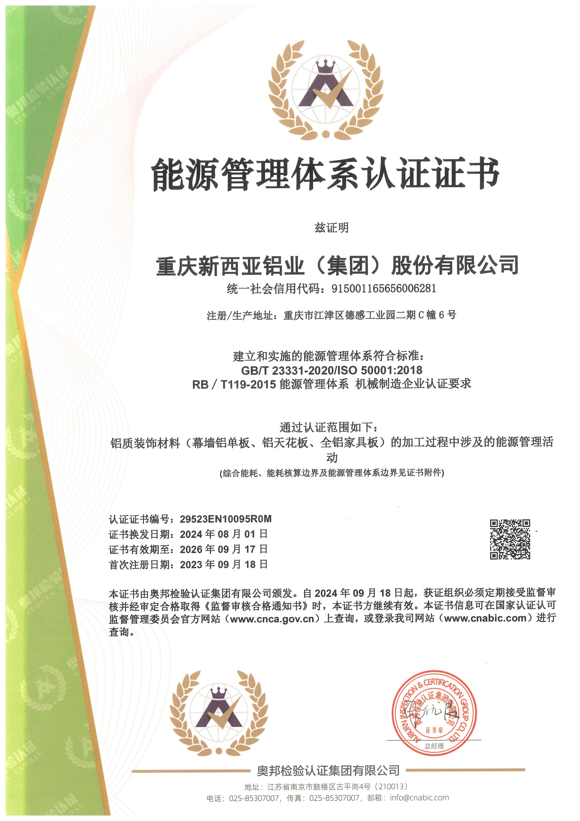 能源管理體系認證證書