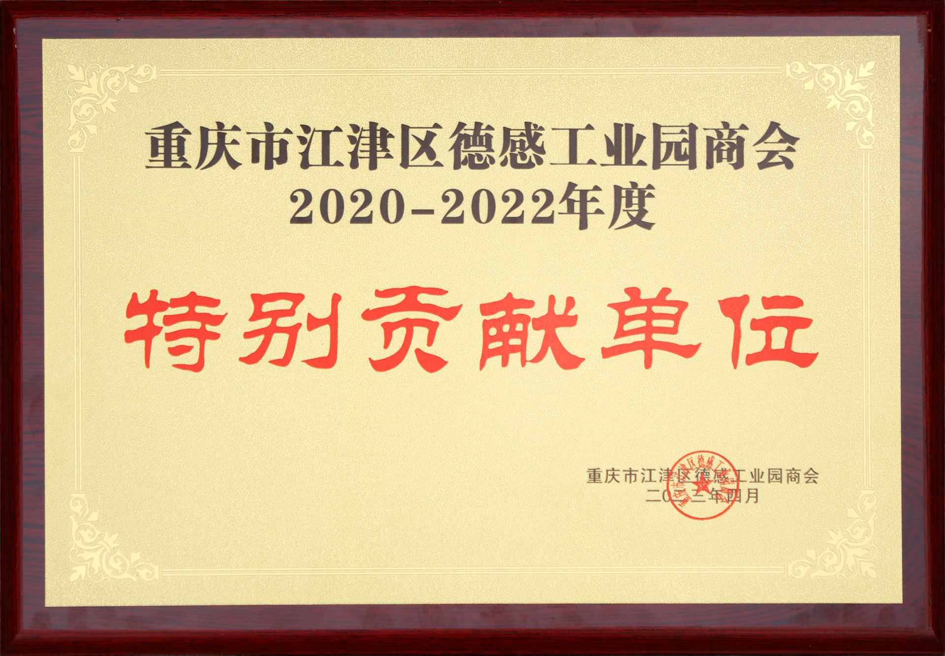 重慶市江津區(qū)德感工業(yè)園商會2020-2022年度特別貢獻單位