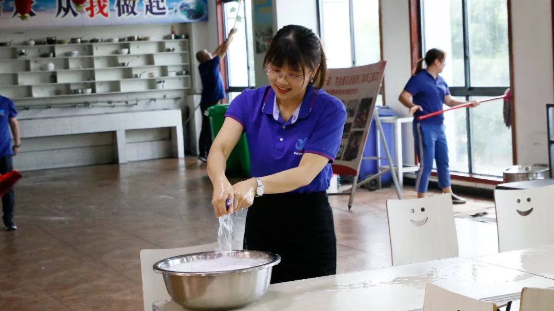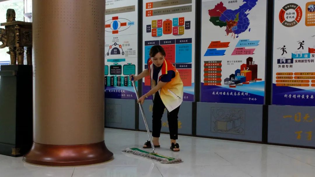 本次大掃除活動以公司辦公樓、食堂、廠區(qū)公共區(qū)域為清掃重點。大掃除期間,黨員干部充分發(fā)揮黨員先鋒模范作用,帶頭干,做表率,廣大積極分子、團員青年、群眾齊上陣,大家熱情高漲、分工明確、積極配合,充分發(fā)揚不怕苦、不怕累的精神,拿起抹布、掃帚、撮箕、拖把等工具,對積存垃圾、死角灰塵進行了全面清理,對亂堆亂放、置物管理等進行了整改,對門窗玻璃進行了細致清潔。大家頂著炎炎烈日,干得熱火朝天,雖然汗流浹背但絲毫沒有影響參與勞動的熱情。不到半天時間,把辦公區(qū)域、食堂及廠區(qū)公共區(qū)域的每一處都清掃得干凈整潔,煥然一新。
