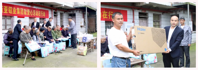 本次到敬老院獻(xiàn)愛心,是重慶新西亞鋁業(yè)集團(tuán)打造愛心企業(yè)的具體體現(xiàn)。慰問活動中,公司總經(jīng)理劉斌首先對敬老院全體老人表示節(jié)日的祝福。劉總指出;重慶新西亞鋁業(yè)集團(tuán)自2010年成立以來,在江津區(qū)各級黨政領(lǐng)導(dǎo)及各部門的高度重視和大力支持下,不忘初心,牢記使命,櫛風(fēng)沐雨,艱苦奮斗,企業(yè)得到了持續(xù)健康的發(fā)展。滴水之恩當(dāng)涌泉相報。尊老、敬老、愛老、助老是中華民族傳統(tǒng)美德,也是集團(tuán)公司“孝道文化”所蘊(yùn)含的深刻內(nèi)涵。今天,我們走進(jìn)臨峰敬老院,為老人們奉獻(xiàn)愛心,表達(dá)重慶新西亞鋁業(yè)集團(tuán)兩百多名員工的綿薄之力,充分彰顯了集團(tuán)公司“為社會做貢獻(xiàn)”的核心價值觀。近年來,集團(tuán)公司在捐資助學(xué)、社會幫扶、扶貧濟(jì)困等方面開展了系列公益活動,得到了社會各界的認(rèn)同與肯定。