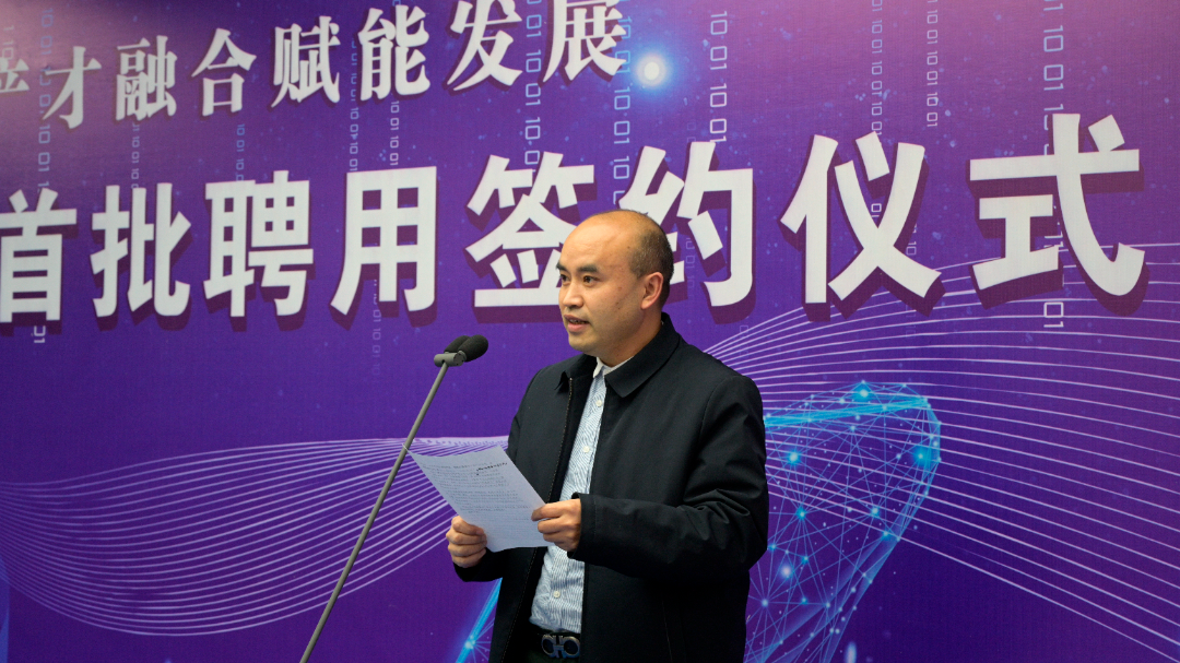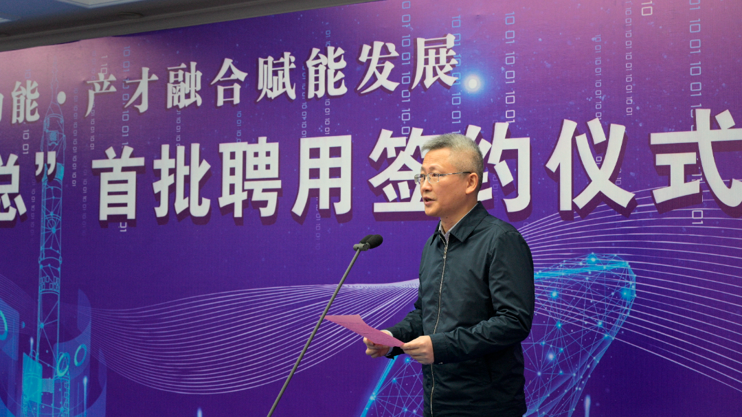 簽約儀式上,區(qū)委常委、組織部部長鐘紅兵通報“科技副總”進企業(yè)專項開展情況并致辭。
