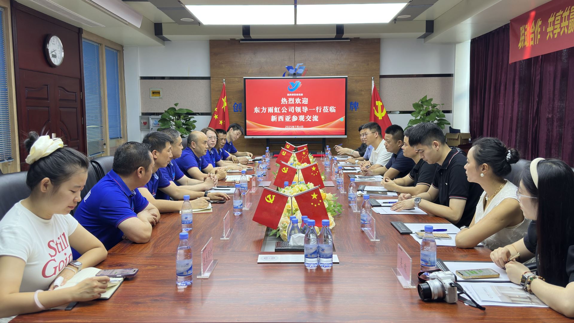 隨后,雙方在一樓多功能廳舉行座談交流。會(huì)議由新西亞鋁業(yè)鋁裝飾副總經(jīng)理邱詠菊主持。劉斌總經(jīng)理致歡迎辭,對(duì)東方雨虹核心管理團(tuán)隊(duì)的到訪表示熱烈歡迎和衷心感謝,并高度評(píng)價(jià)了東方雨虹在防水領(lǐng)域的卓越成就與市場(chǎng)影響力。雙方高管分別介紹了各自企業(yè)的發(fā)展現(xiàn)狀、核心產(chǎn)品及市場(chǎng)布局。