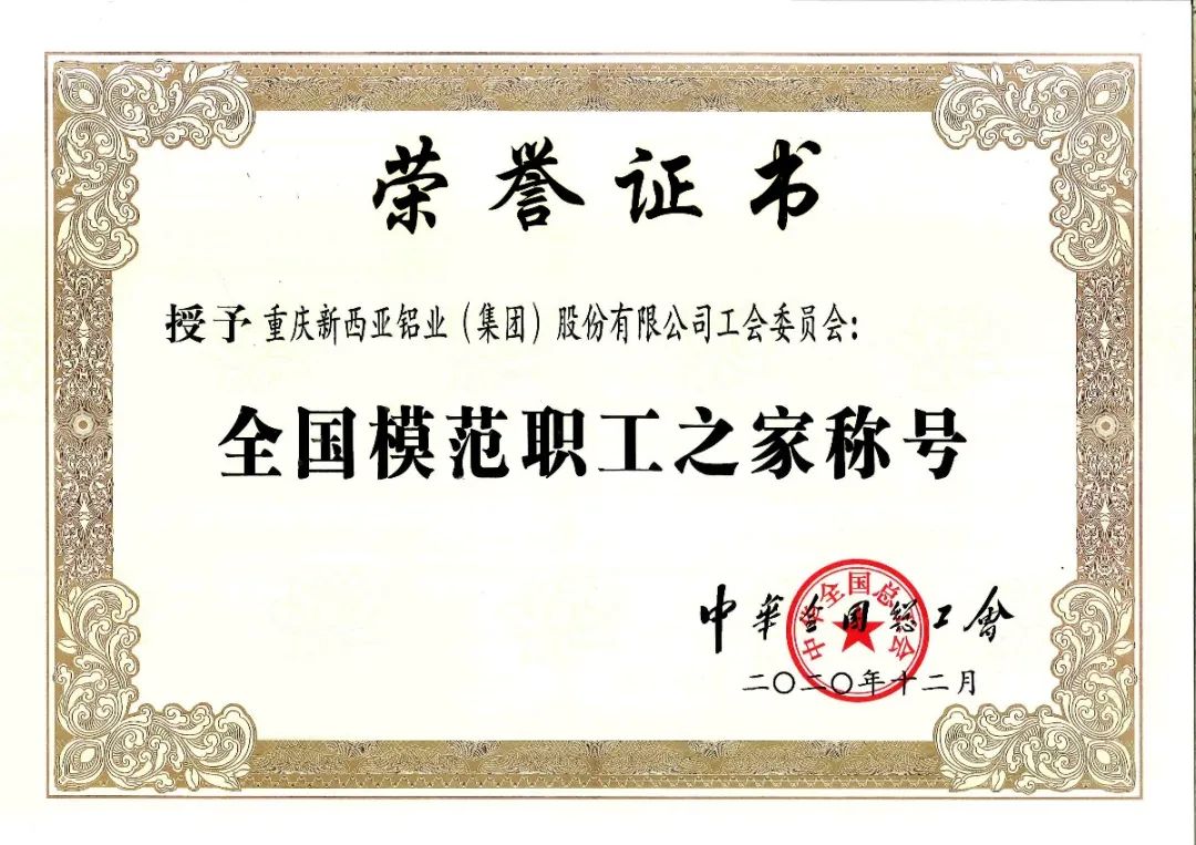 據悉,“全國模范職工之家”榮譽稱號,由中華全國總工會設立,每五年評選一次,是全國工會系統(tǒng)表彰先進集體的最高榮譽,也是國家對基層工會工作的最高褒獎。新西亞鋁業(yè)集團工會是2021年江津區(qū)唯一獲得該項榮譽的單位。新西亞鋁業(yè)集團工會將以此為新起點,再接再厲,以飽滿的工作熱情、昂揚的精神狀態(tài),切實做好員工服務工作,積極發(fā)揮好公司與員工的橋梁和紐帶作用,在不斷增強員工獲得感、認同感、幸福感的同時,為創(chuàng)行業(yè)標桿、鑄民族品牌的新西亞鋁業(yè)集團作出新的更大貢獻。