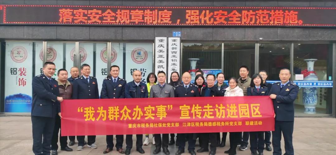 為深入貫徹黨的十九屆六中全會(huì)精神,把脈問診與解決企業(yè)發(fā)展中存在的難點(diǎn)與問題,12月7日,由重慶市稅務(wù)局社保處、重慶市江津區(qū)稅務(wù)局及江津德感稅務(wù)所牽頭組織開展的“我為群眾辦實(shí)事”宣傳走訪團(tuán)走進(jìn)德感園區(qū)部分國有企業(yè)、民營企業(yè)進(jìn)行政策宣講與座談交流,座談交流會(huì)在新西亞鋁業(yè)集團(tuán)黨群活動(dòng)室進(jìn)行。