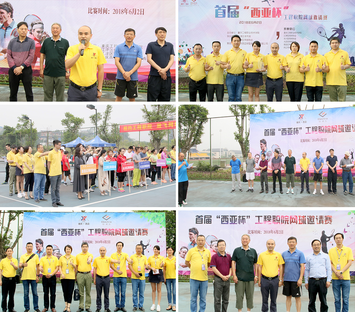 6月2日,首屆“西亞杯”網(wǎng)球邀請賽在重慶工程職業(yè)技術(shù)學(xué)院拉開帷幕。來自內(nèi)江、永川、大足、榮昌、江津網(wǎng)協(xié)及工程職業(yè)學(xué)院共六支代表隊參加了邀請賽。江津區(qū)體育鐘局長、重慶工程職業(yè)技術(shù)學(xué)院張校長等領(lǐng)導(dǎo)親臨開幕式現(xiàn)場。重慶新西亞鋁業(yè)公司董事長劉斌率公司經(jīng)營班子及相關(guān)人員參加了開幕式,并應(yīng)邀在開幕式上發(fā)言。