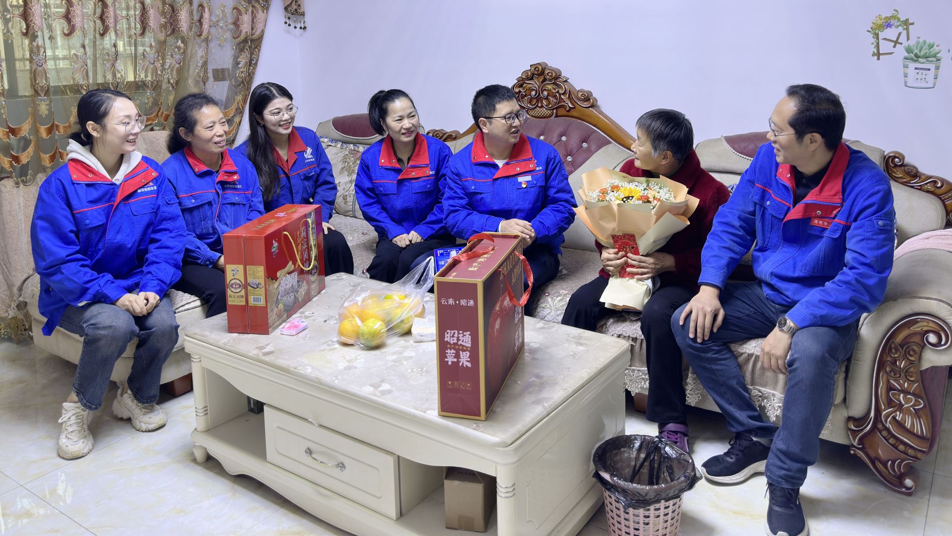 黨支部書記曹健、工會主席傅明華、團(tuán)支部書記張麗芳及公司員工代表組成慰問組,開展座談并登門走訪,將滿載敬意的慰問品與真摯關(guān)懷送到員工父母手中。此次“組團(tuán)送溫暖”,既是對“尊賢頌德、感恩奉獻(xiàn)”企業(yè)文化的生動踐行,也是對集團(tuán)發(fā)展歷程中孝道與感恩精神的溫情回溯。